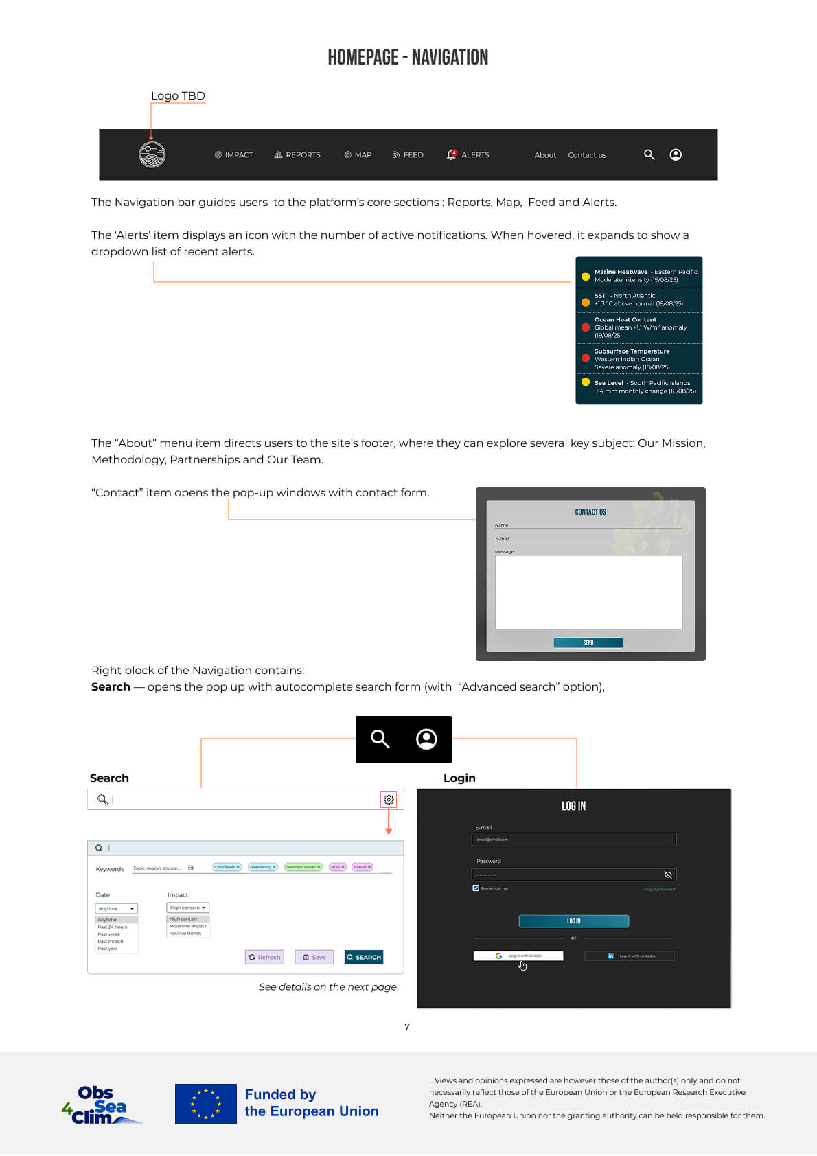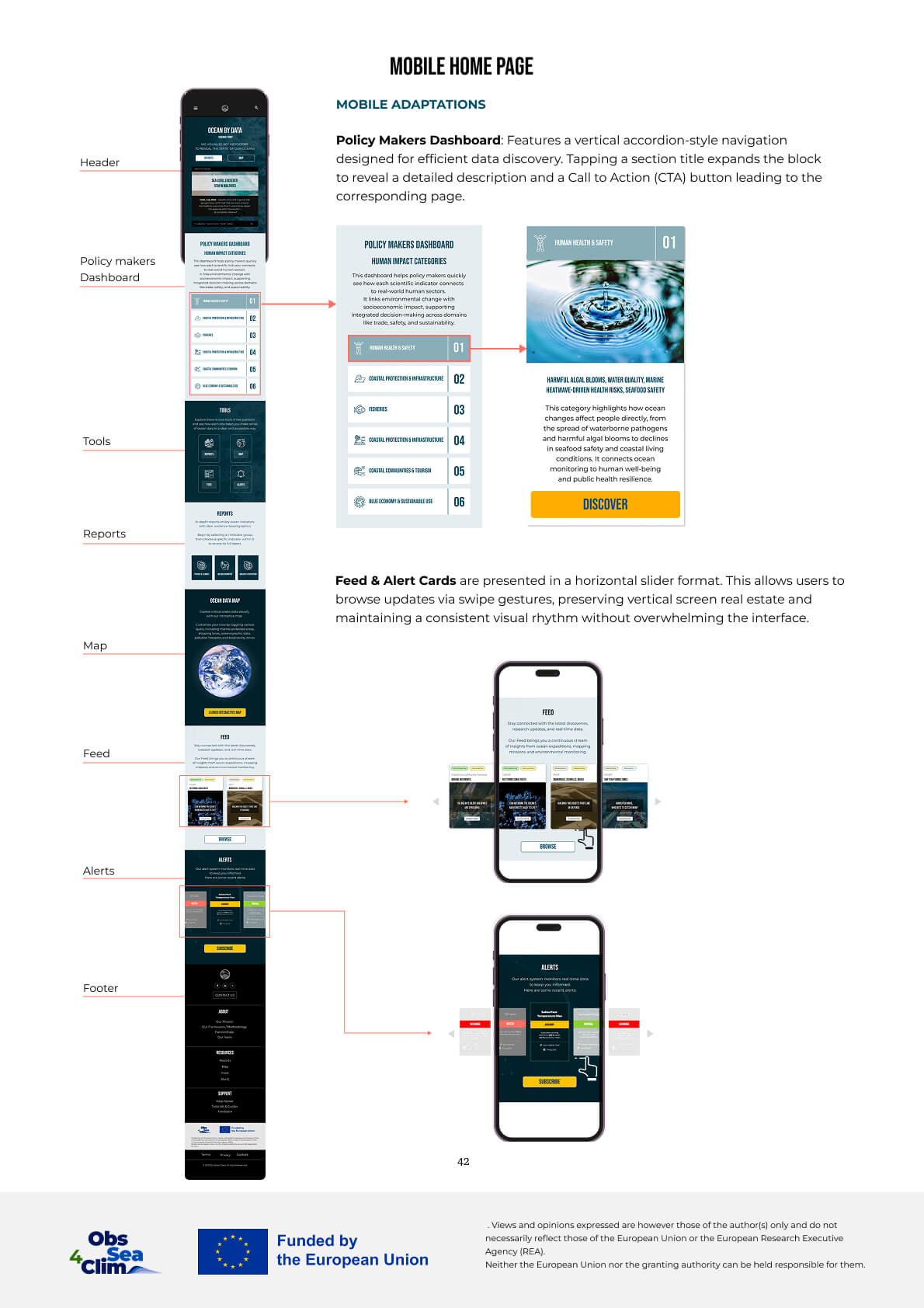 The following sections outline key parts of the system, including page structures, interaction patterns, and responsive behavior across desktop and mobile views.