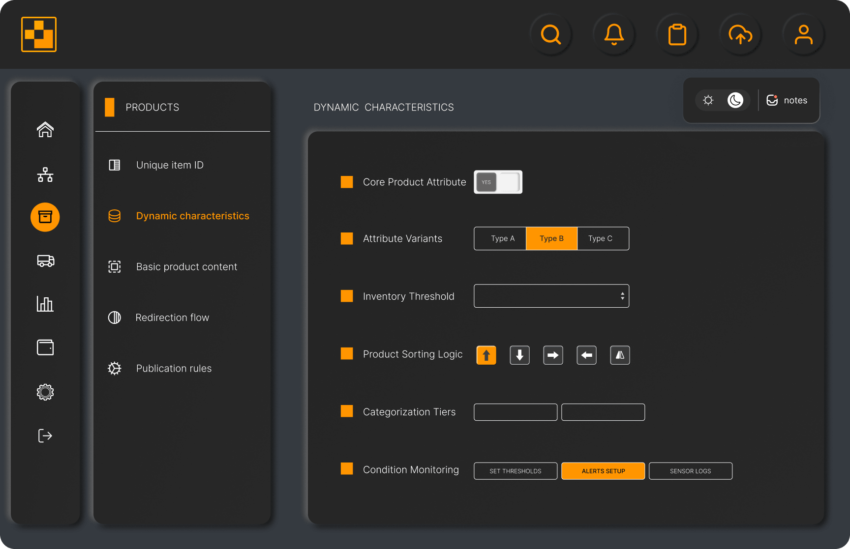 - ● Task-driven navigation logic: Modules (Products, Logistics, Network) are separated by responsibility, so users can focus on one task at a time.