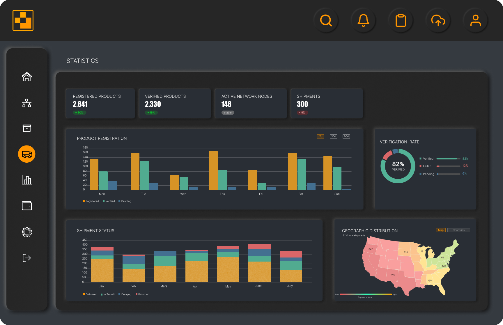 It replaces manual spreadsheet-based tracking with a unified interface for product verification, logistics, and operational analytics.